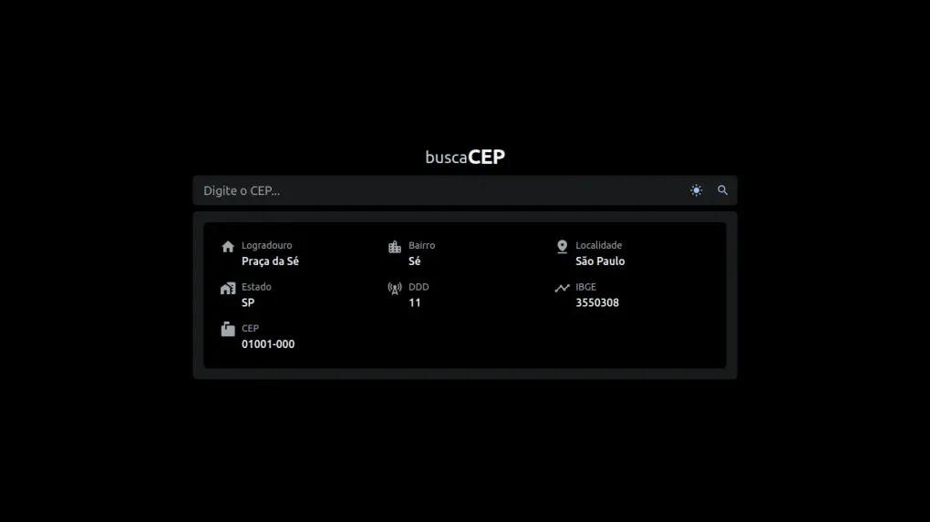 BuscaCEP é uma aplicação web para consulta de código de endereçamento postal brasileiro (CEP) assim retornando várias informações sobre o mesmo.